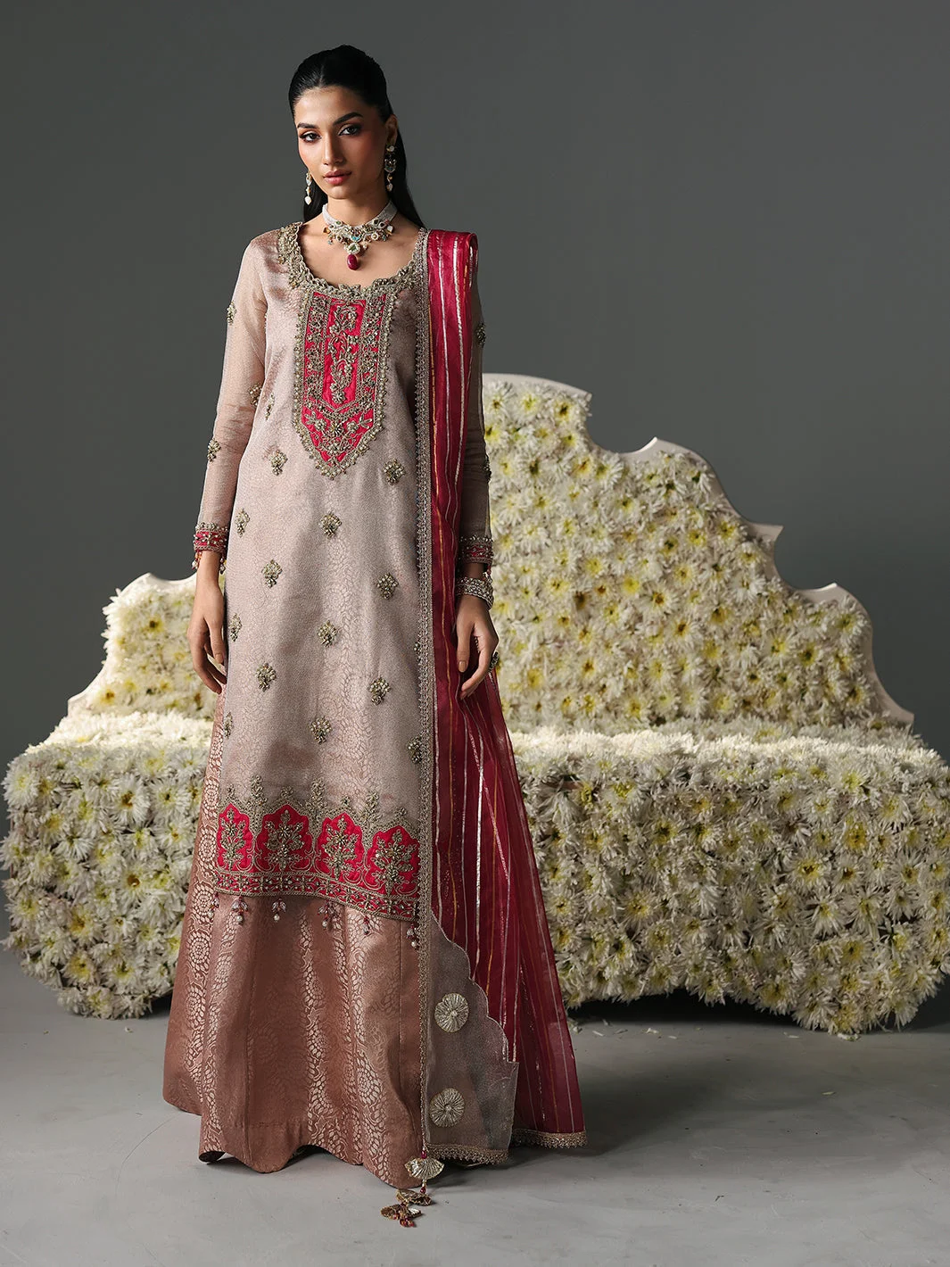 Elevate your festive wardrobe with the Allys Official Kish Sharara Set — a breathtaking 3-piece ensemble crafted from luxurious Masoori Net, Jamawar, and Organza Lurex, adorned with exquisite hand embellishments. Designed for weddings, Eid, and formal events, this multi-colored masterpiece is the ultimate statement in Pakistani designer party wear. Authentic Allys Official collection — available now with free worldwide delivery.