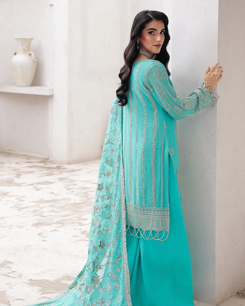 Elevate your wardrobe with this breathtaking Allys Official formal wear masterpiece — a fully stitched 3-piece outfit that captures the essence of Pakistani designer fashion at its finest. Designed for the modern woman who appreciates couture craftsmanship, this ensemble seamlessly blends traditional embellishment techniques with contemporary silhouettes, making it an unmissable addition to any occasion-wear collection.