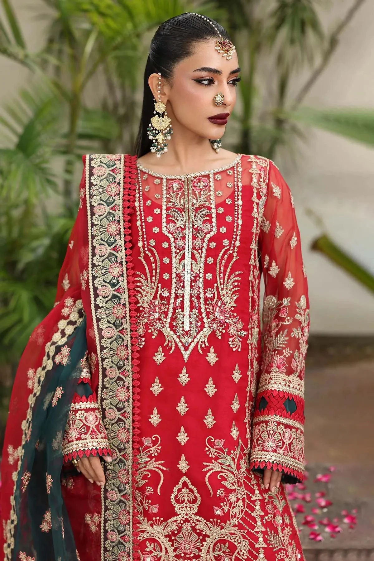 Discover the Imrozia | Serene Sarosh — an exquisitely crafted embroidered organza 3-piece formal wear suit adorned with handmade embellishments and intricate bordework, embodying the finest in Pakistani designer fashion. This stunning red ensemble pairs a richly embroidered front with a dyed raw silk trouser and an elegant embroidered organza dupatta for a complete, head-turning look. Shop authentic Imrozia luxury formals online with free worldwide delivery — available in unstitched and ready-to-wear sizes.