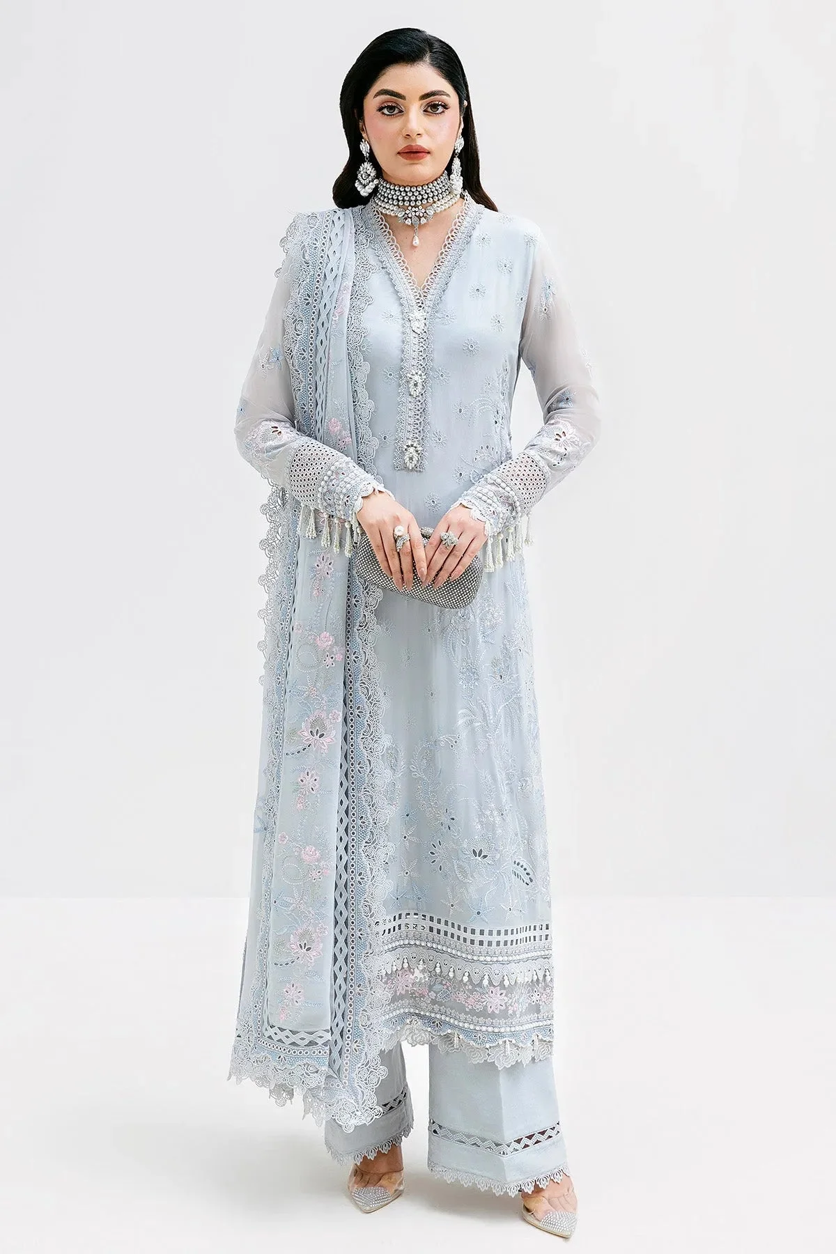 Imrozia Serene S-1091 Stone is an exquisite 3-piece luxury formal ensemble crafted from embroidered georgette and plain raw silk — a signature of authentic Pakistani party wear elegance. The stone grey palette and intricate embroidery make it the perfect choice for weddings, Eid, and festive celebrations. Shop this original Imrozia Serene collection with free worldwide delivery and experience premium Pakistani designer fashion delivered to your door.