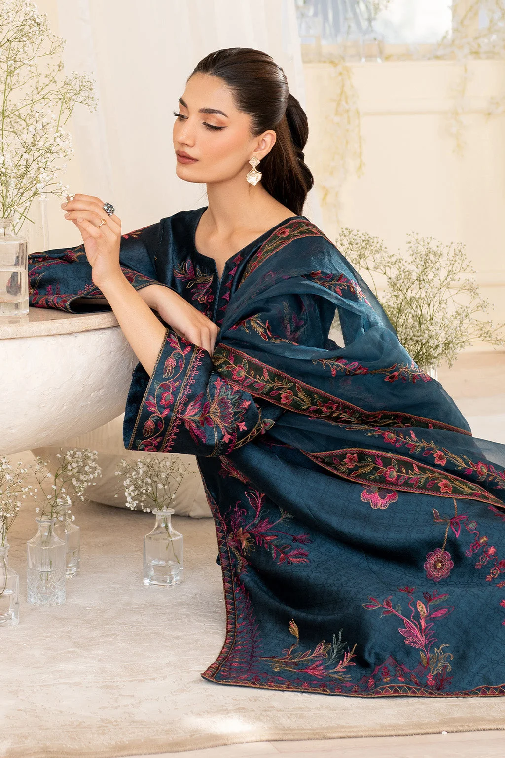 Elevate your wardrobe with this breathtaking Iznik Embroidered Pure Jacquard Silk suit — a masterpiece in Pakistani designer party wear that seamlessly transitions from grand formal evenings to intimate festive gatherings. The rich teal blue palette paired with intricate surface embellishments reflects Iznik’s signature commitment to luxury craftsmanship and timeless elegance. Whether you’re shopping for a wedding guest outfit or a statement evening ensemble, this 3-piece suit delivers unmatched sophistication.