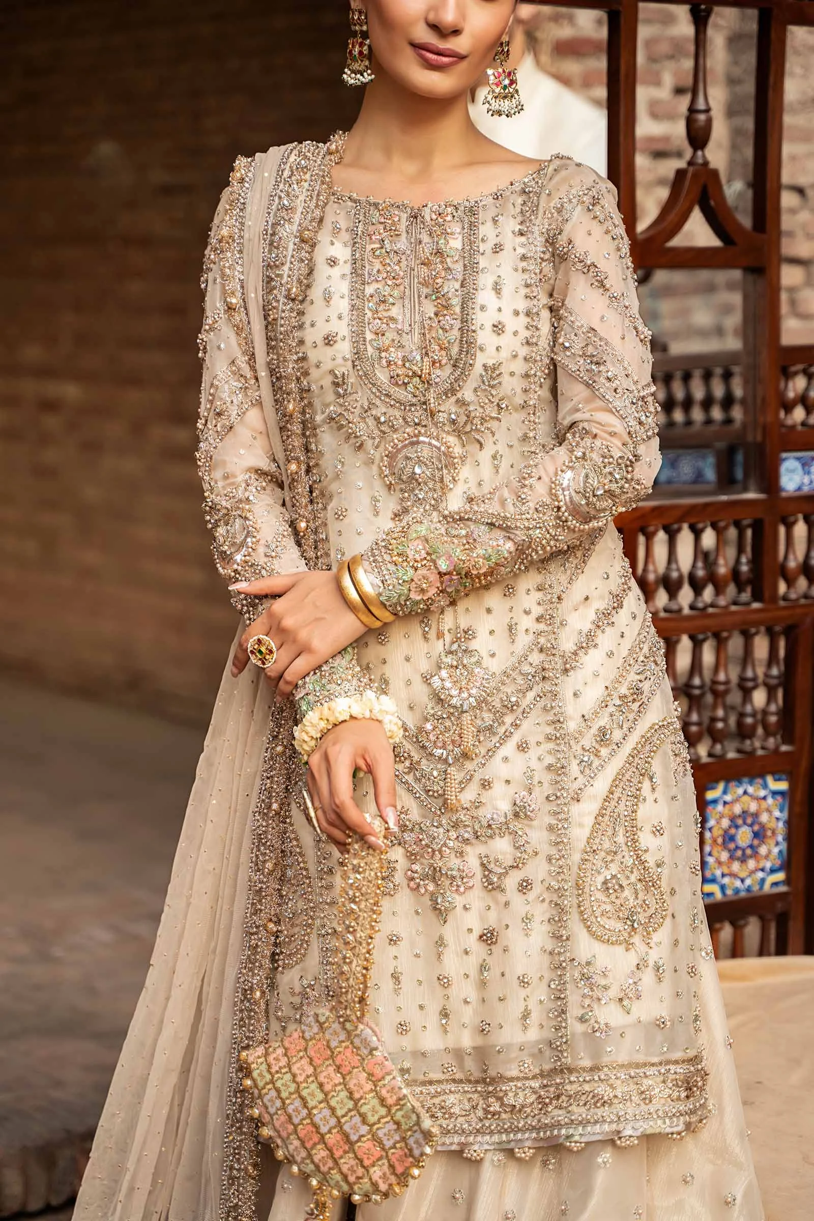 Constructed from premium-grade fabrics chosen specifically for the Maria.B. Couture Vol-10 collection, Ishtar is as comfortable as it is magnificent. The lightweight yet richly embellished fabric drapes beautifully, ensuring graceful movement whether you are walking down the aisle or gracing a formal soirée.