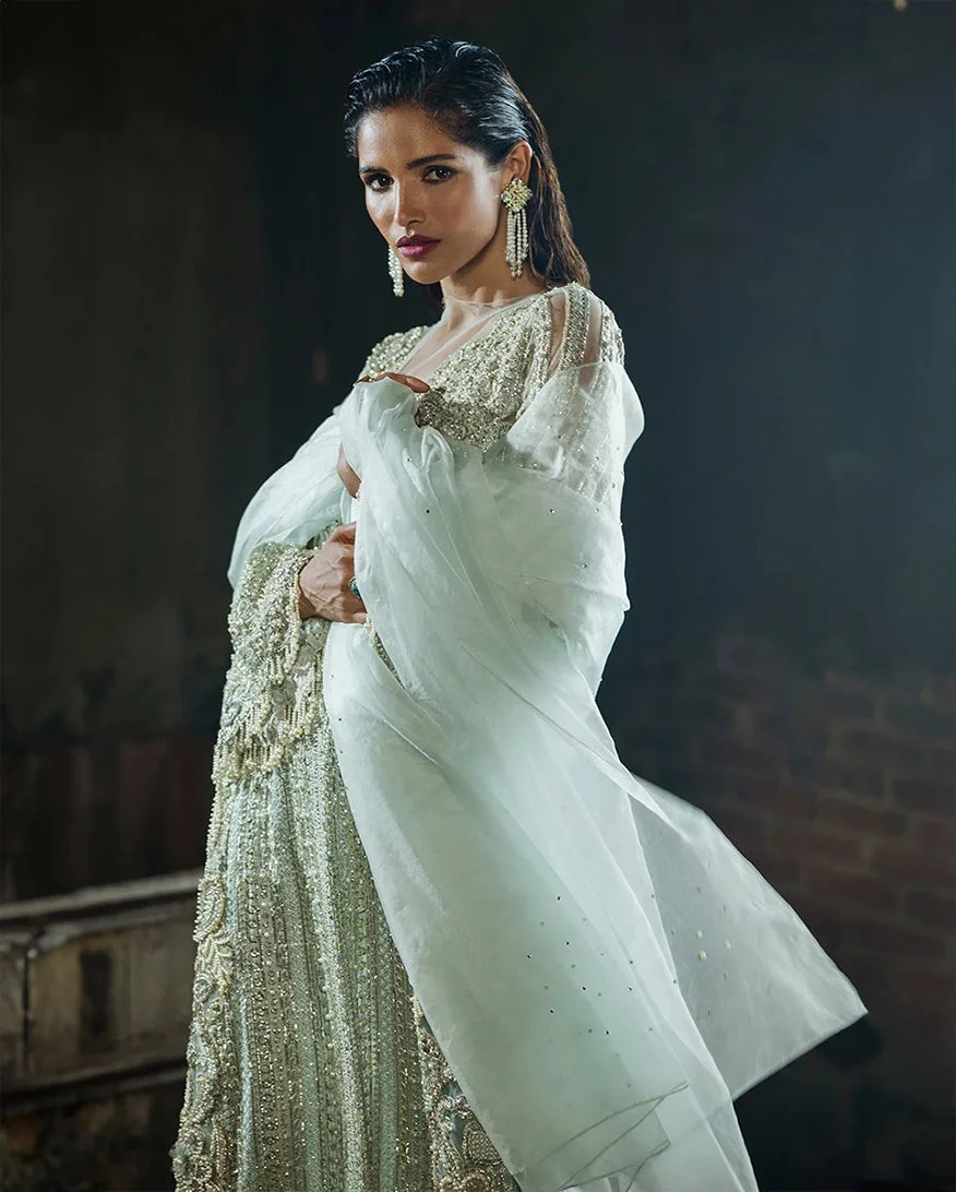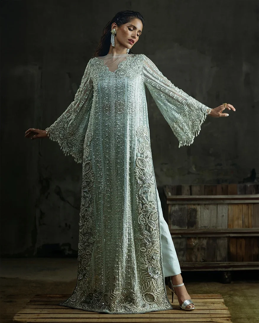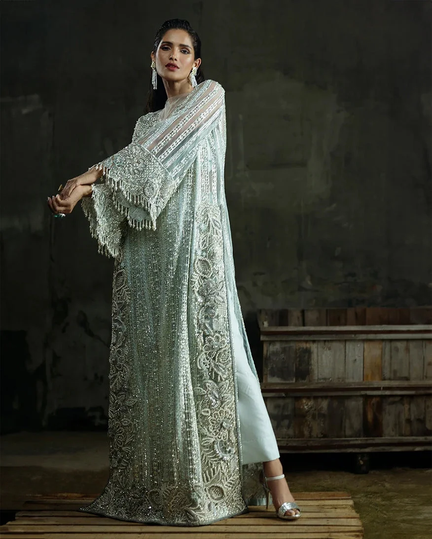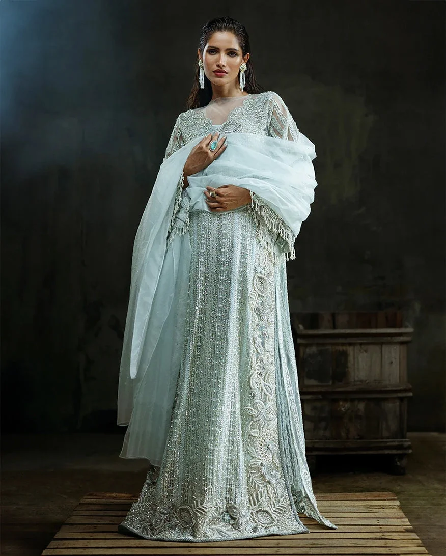 The Cardamine by Mushq Official is a masterpiece from the prestigious Fleur Luxury Formals ’24 collection — a ready-to-wear party wear ensemble that effortlessly blends tradition with contemporary elegance. Dressed in a soft, sophisticated aqua hue, this three-piece luxury pret set is designed for women who believe that every occasion deserves nothing less than perfection. When you buy Mushq online, you invest in authentic Pakistani designer fashion that speaks volumes before you even say a word.
