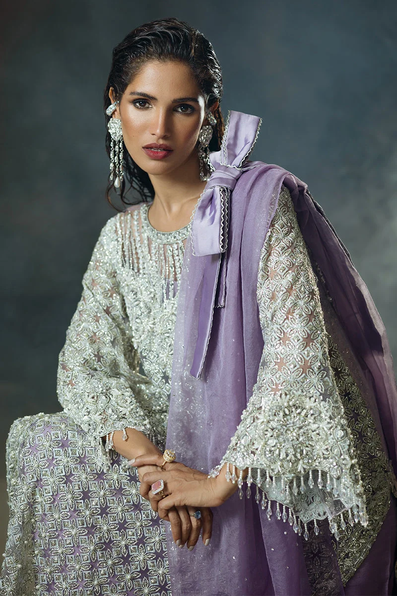 Introducing Lavande by Mushq — a breathtaking statement in luxury formal wear that captures the romance of purple florals and the refinement of couture craftsmanship. Part of the coveted Mushq Fleur Collection, this 3-piece ensemble is a celebration of Pakistani designer fashion at its most elevated, designed for the woman who commands attention at every festive gathering.