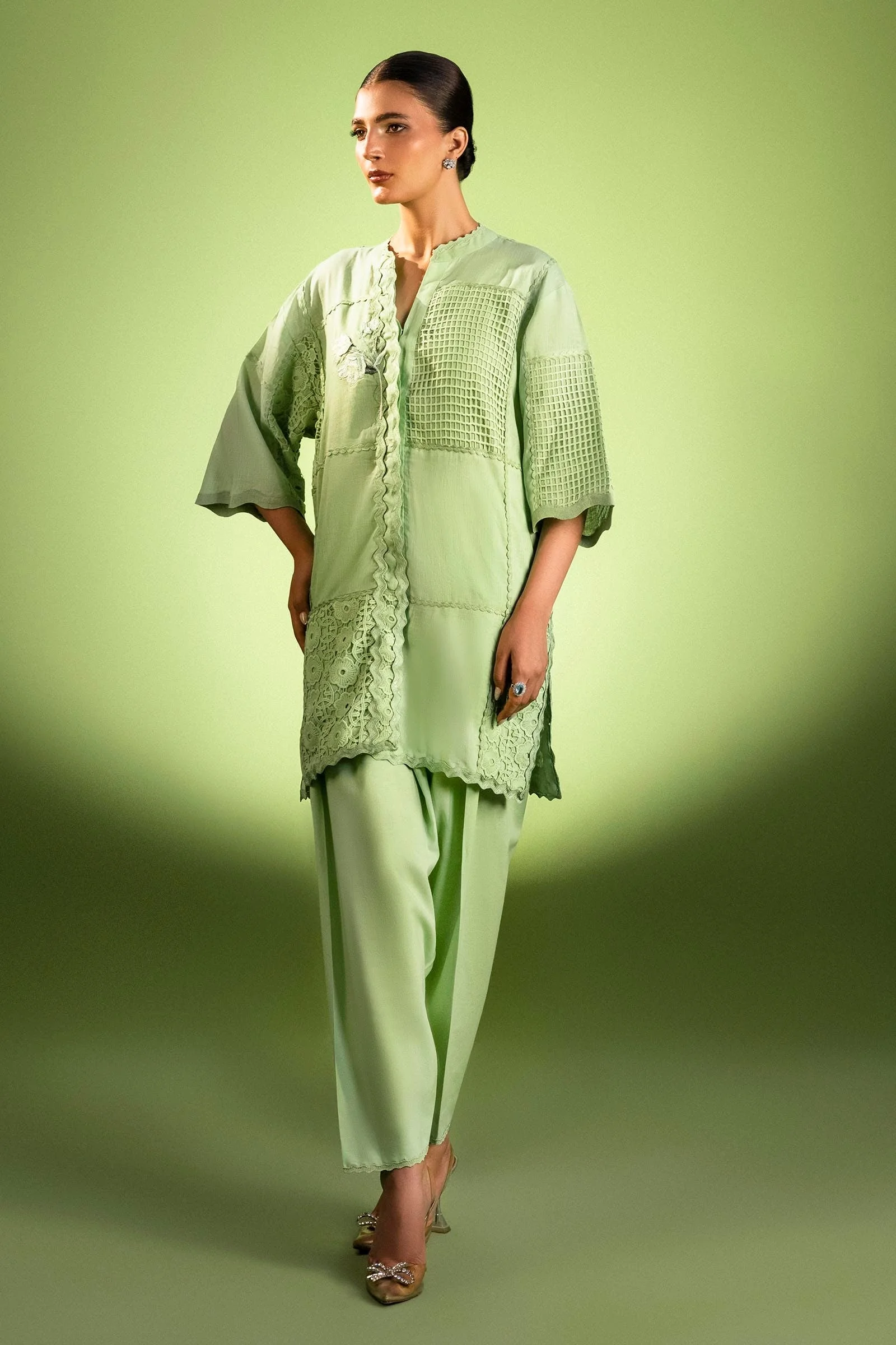 This Sana Safinaz original features a classic short shirt silhouette paired with a tailored shalwar, rendered in a rich, deep green that exudes quiet luxury. The clean lines and thoughtful cut reflect the brand’s hallmark design sensibility — modern yet deeply rooted in South Asian tradition. Every stitch speaks to the craftsmanship that has made Sana Safinaz one of Pakistan’s most coveted designer labels.