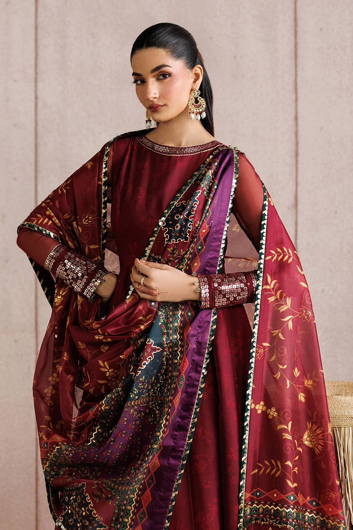 The combination of chiffon, raw silk, and tissue silk reflects the hallmark of Pakistani couture craftsmanship, offering both comfort and opulence.