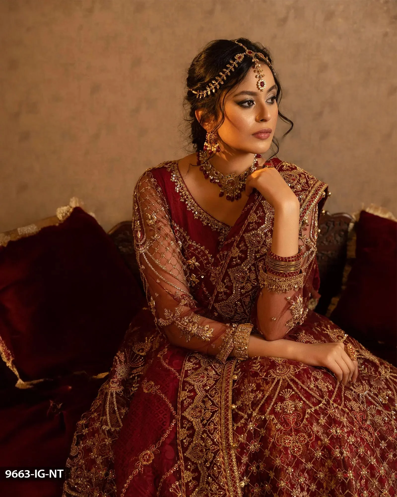 Make a statement at your next celebration with this stunning Sha Posh Textile 3-Piece Frock Lehenga — a masterpiece of Pakistani designer fashion crafted in luxurious Net, Organza, and Jamawar fabrics. Designed for weddings, Barat, Walima, Mehndi, and elite formal events, this exquisite ensemble is the ultimate party wear choice for the modern South Asian woman. Available in rich Maroon and vibrant Ferozi, with free worldwide delivery — shop authentic Sha Posh Textile online at Zilverah today.