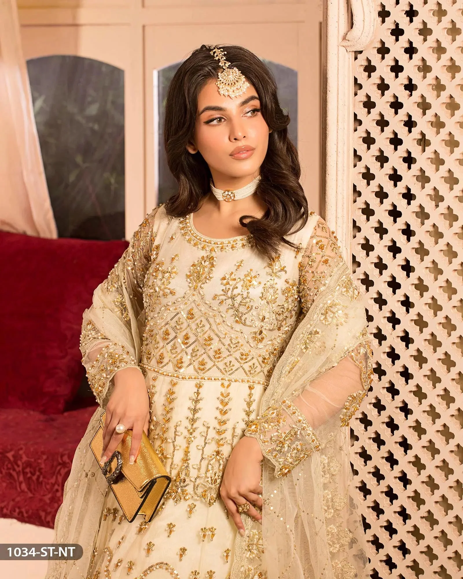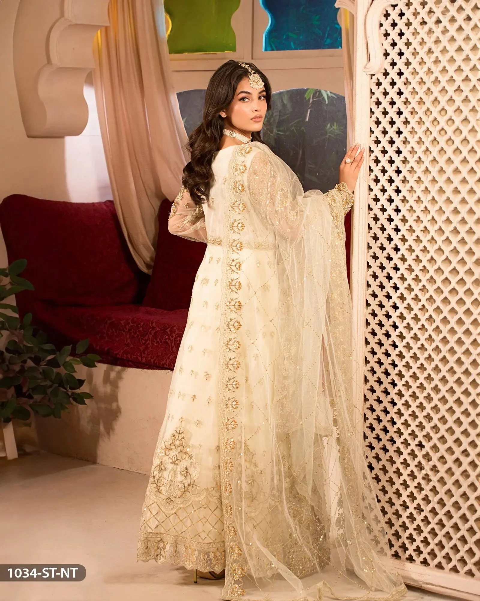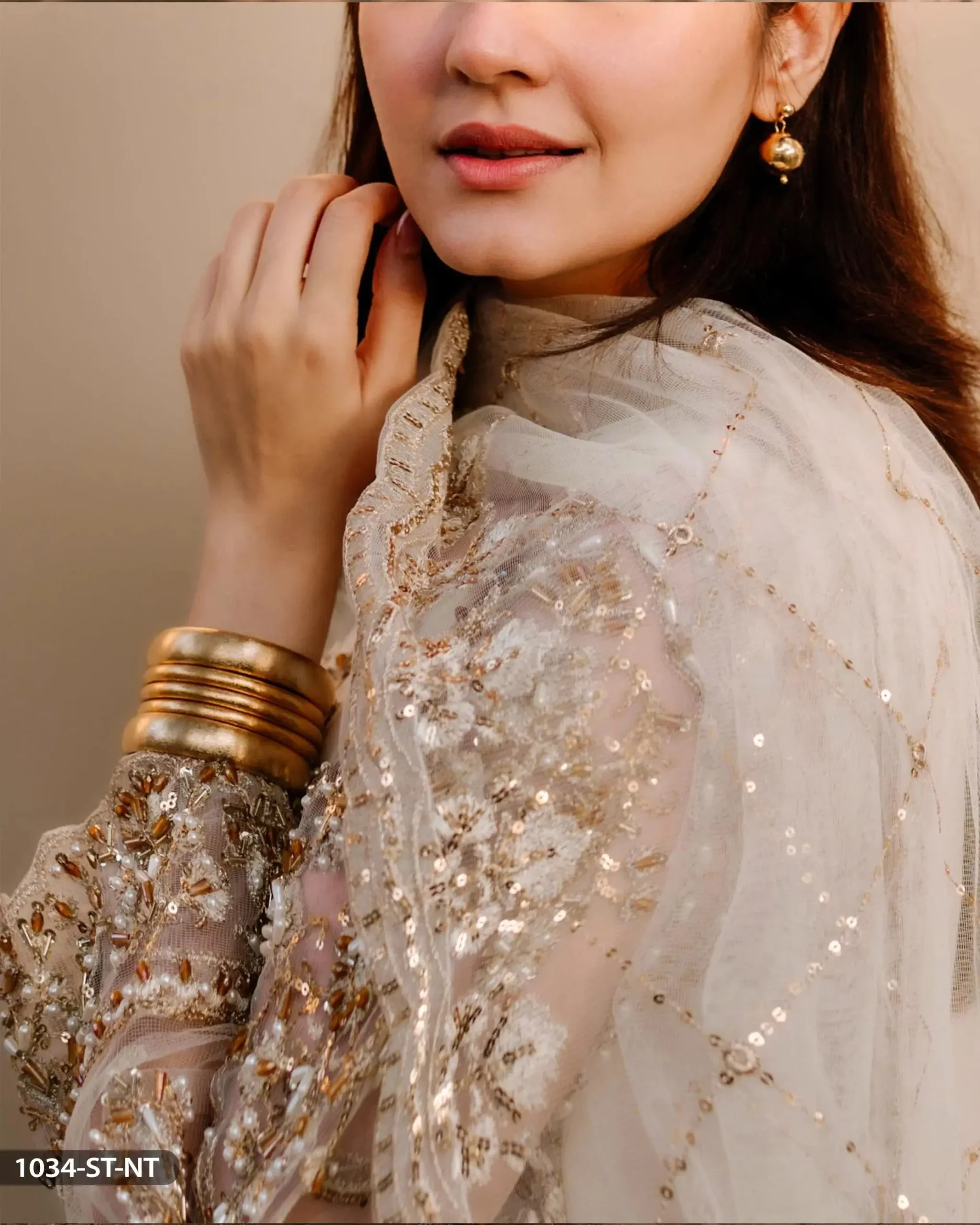Step into the spotlight this wedding and festive season with this breathtaking Sha Posh Textile Off White Net Maxi — a masterfully crafted 3-piece party wear ensemble that embodies the very best of Pakistani designer fashion. Whether you’re attending a walima, a formal dinner, or a grand mehndi celebration, this maxi-length net shirt set delivers unmatched grace and luxury. When you buy Sha Posh Textile online, you invest in a legacy of artisanal craftsmanship that is celebrated across Pakistan and beyond.