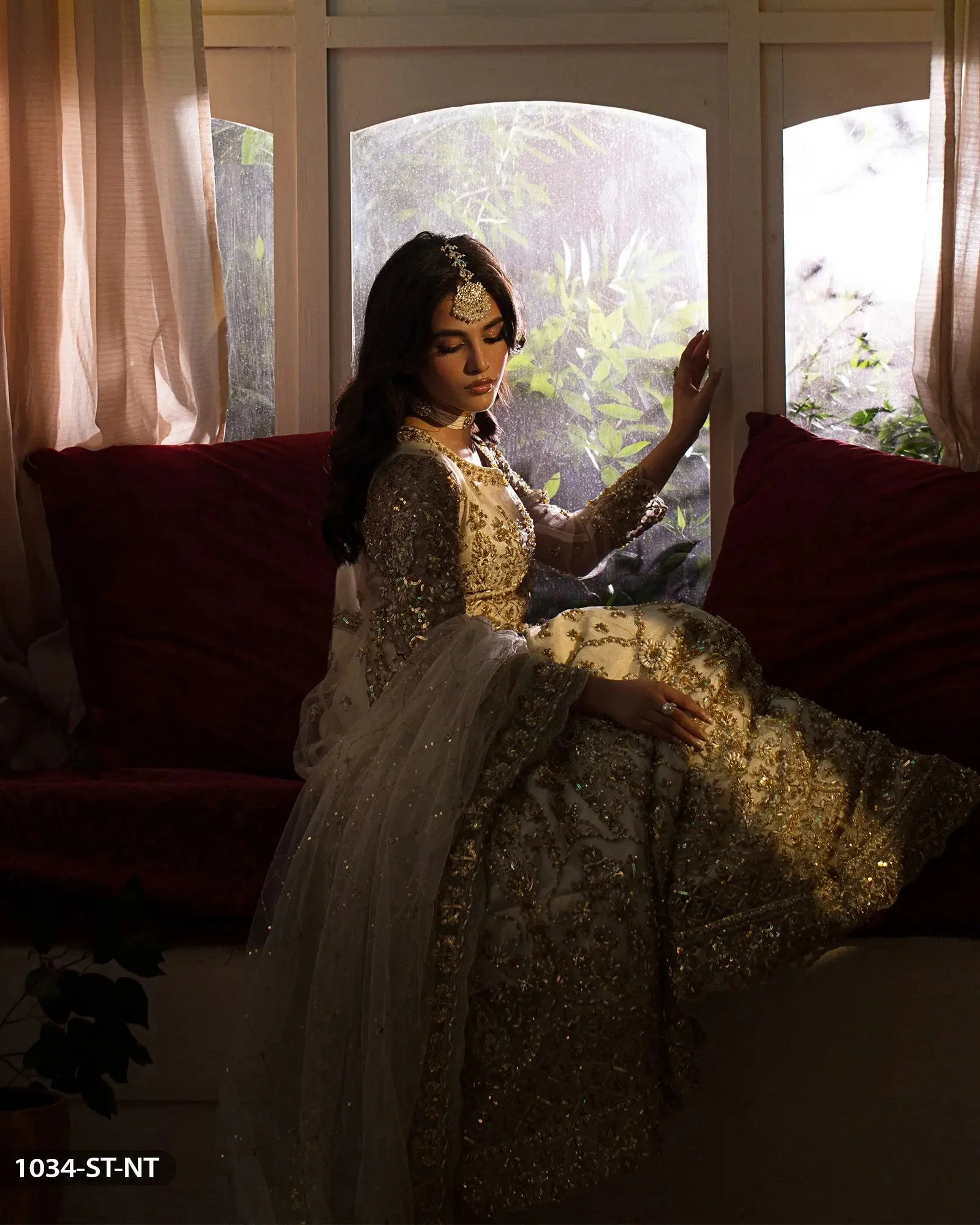 • Tilla Embroidery: Rich, golden threadwork that catches the light and adds regal depth to the silhouette