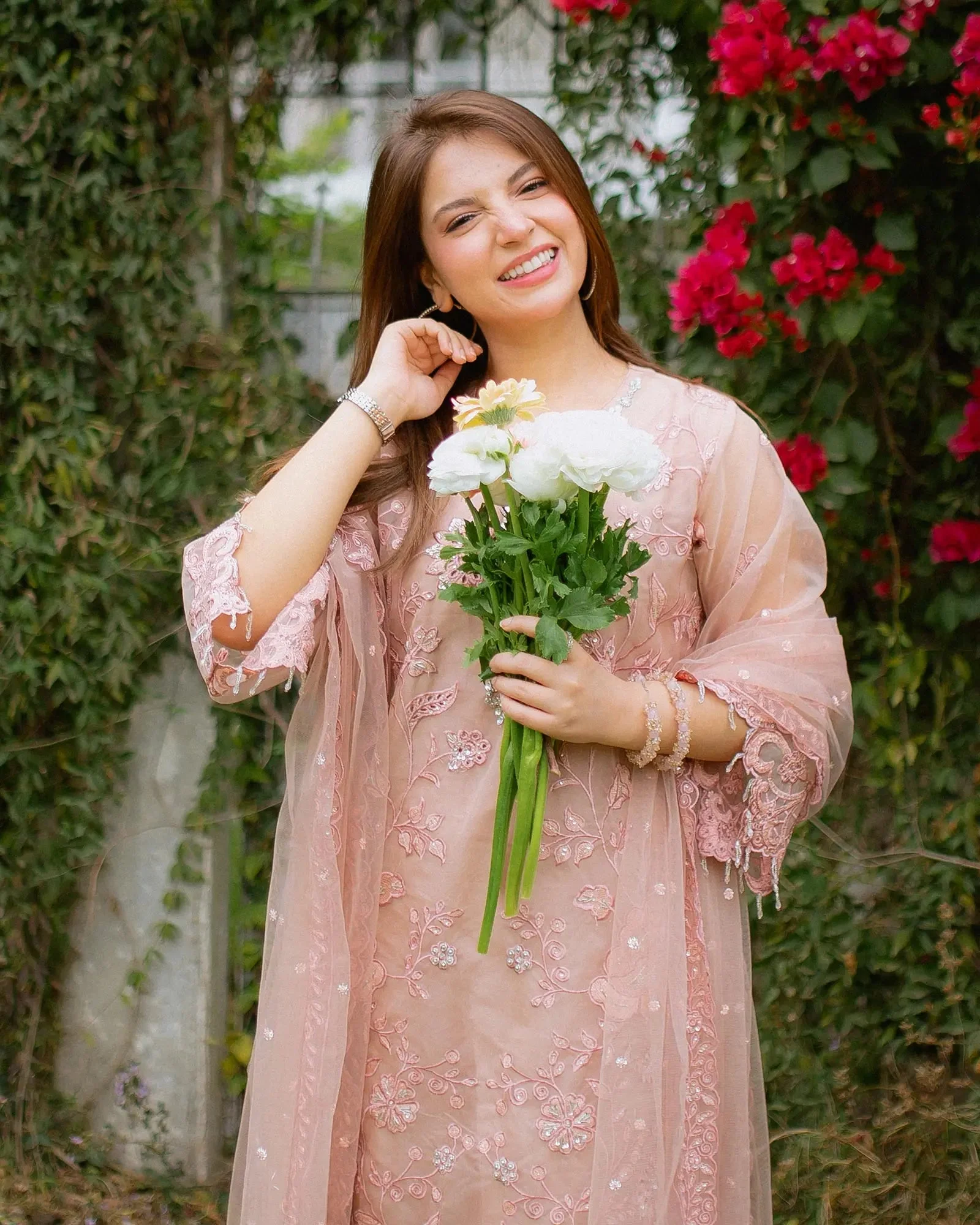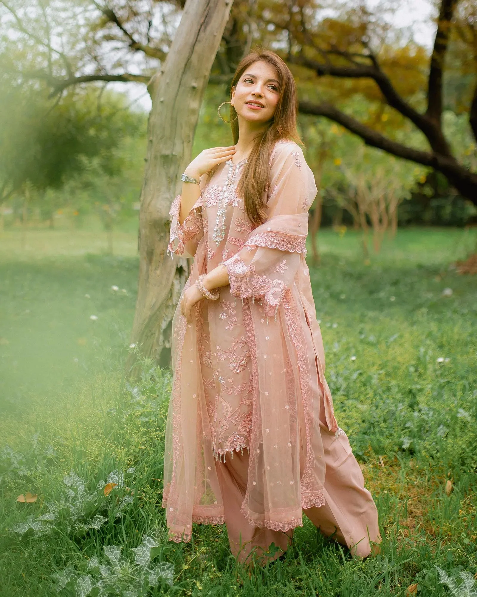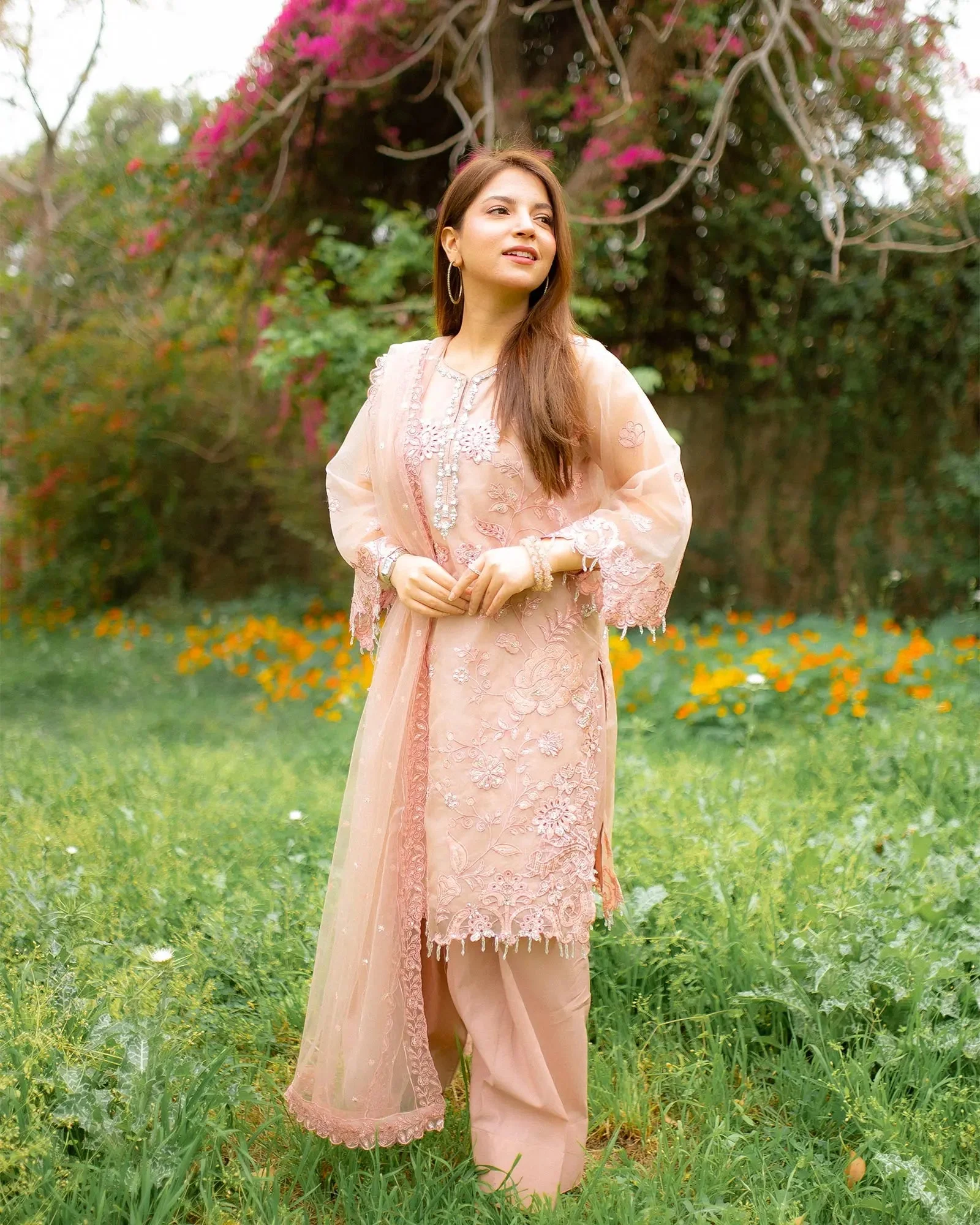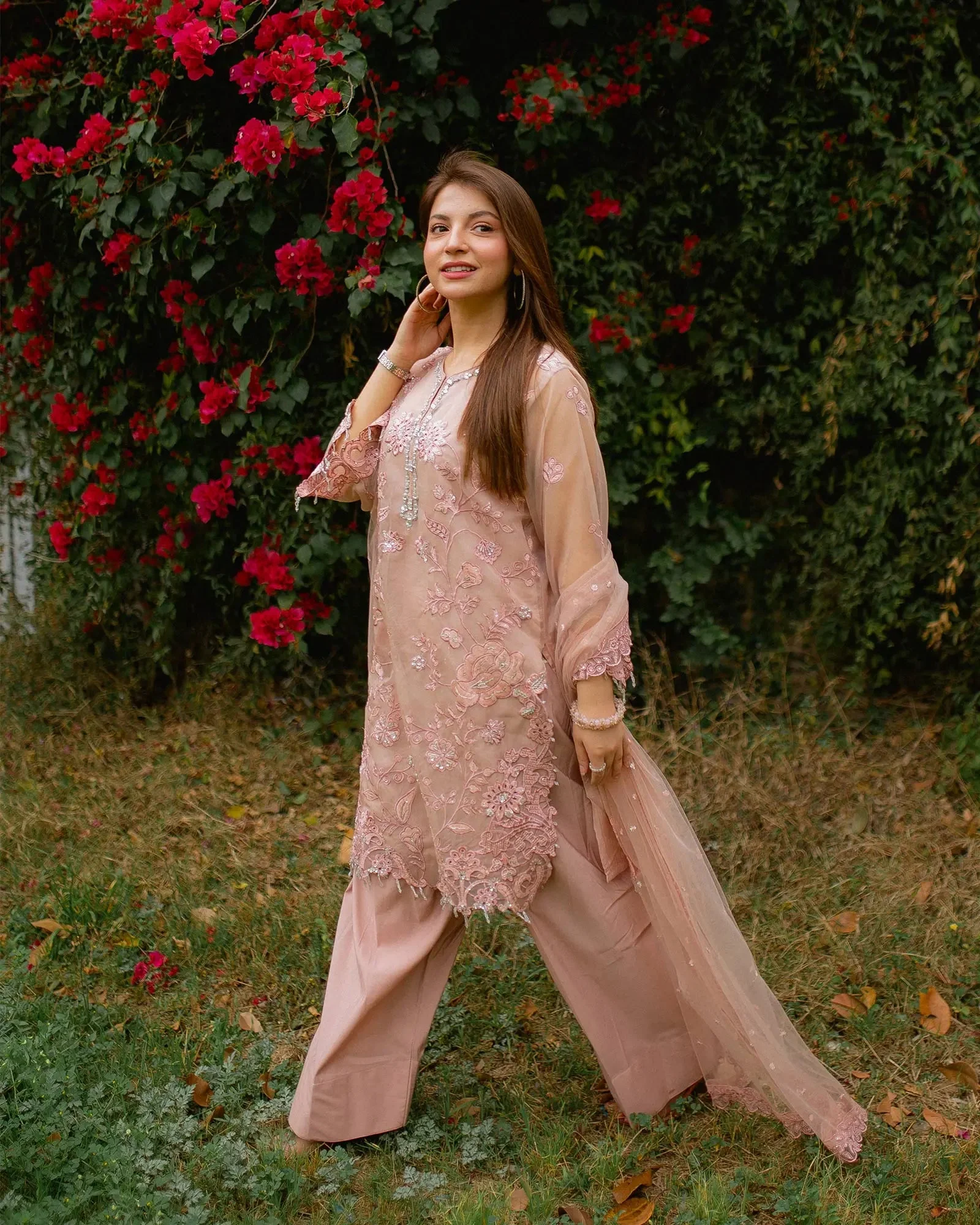 The centerpiece of this ensemble is a beautifully embroidered semi pure organza shirt that captures the essence of traditional Pakistani artistry. Delicate embroidery work adorns the shirt in a manner that reflects Sha Posh Textile’s signature design philosophy — intricate yet wearable, classic yet contemporary. Paired with a refined embroidered net dupatta, the overall silhouette exudes understated glamour perfect for formal settings.