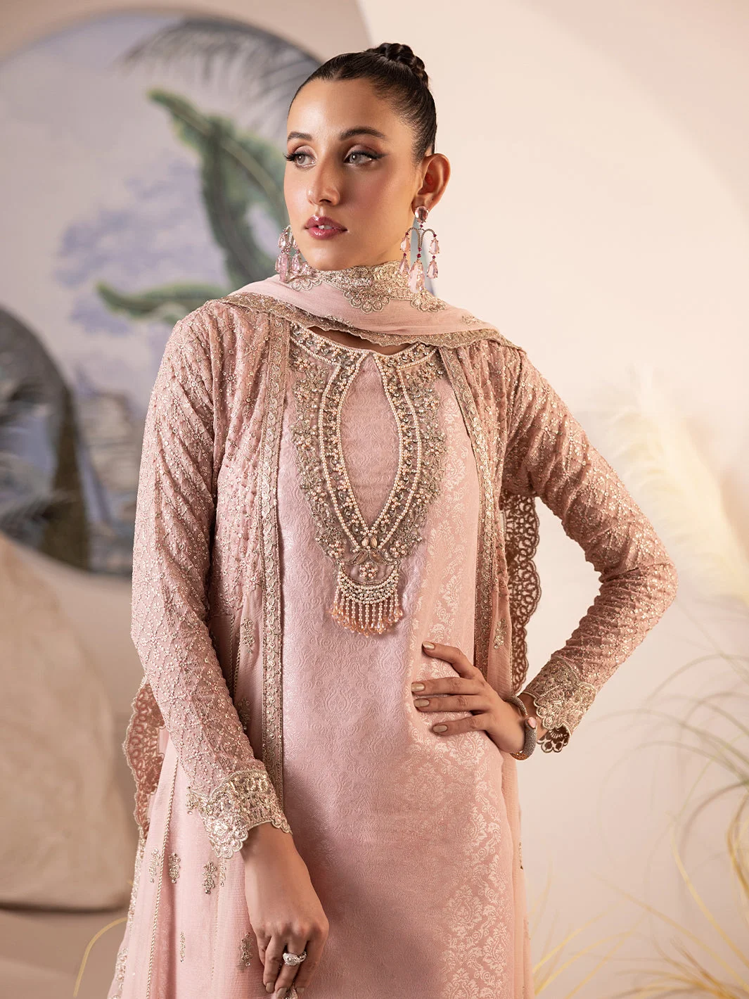 Step into effortless sophistication with the ShahJahan Official Allure Collection — a stunning peach embroidered gown designed for women who demand the best in party wear and festive dressing. This original ShahJahan piece harmoniously blends contemporary aesthetics with timeless elegance, making it one of the most coveted silhouettes in Pakistani designer fashion today. Whether you’re attending a wedding reception, a formal dinner, or a glamorous festive gathering, this gown delivers unmatched presence and poise.